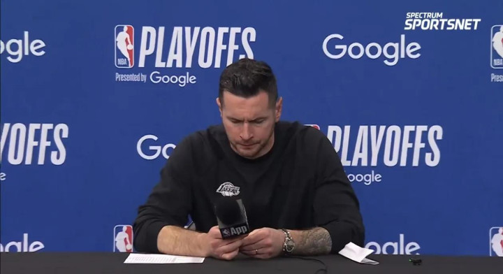 不过这场比赛湖人赢得真不容易,詹姆斯攻防一体,都扎马步防守了,篮板卡位、抢断快攻、空位三分、被打翻身,十八般武艺都拿出来了,比赛结束时也是大口喘着粗气,累得不行!要是场场都要这么打,詹姆斯估计会提前被透支。东契奇就更别说了,第一节的发挥直接打穿森林狼防线,他就是屠狼宝刀!全场比赛东詹组合合力贡献球队94分中的52分,还送出了16个助攻。 赛后湖人众将接受了采访,首先是主教练雷迪克被问到了获胜的原因,“我们展现了比赛的态度,把对抗做到了极致,这就是季后赛的标准,上一场我们直到第三节后半段才有起色。”而谈到第三节7分40秒的那个暂停时,“我当时只想激励球员,要有危机感,这赛季我不是第一次这么生气。”